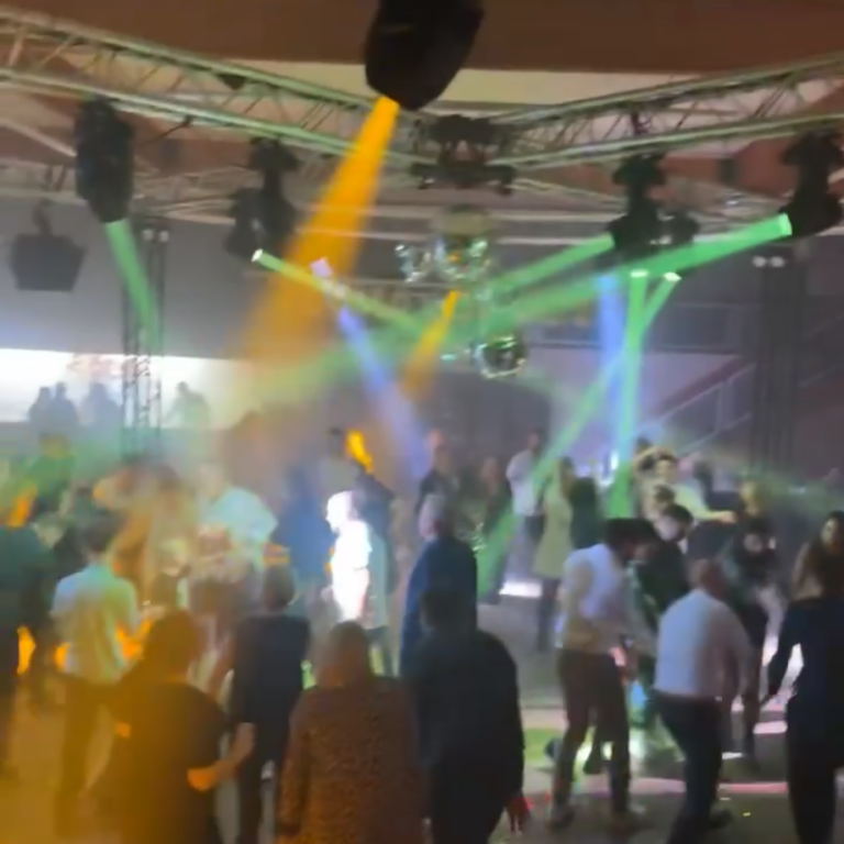 Ils ont transformer la salle des fête en véritable discothèque pour notre repas annuel.
